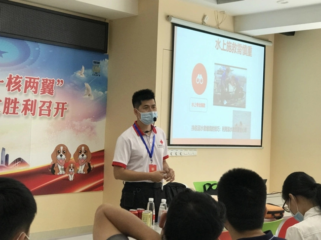 培训老师从应急基本常识、心肺复苏操作流程、AED除颤仪使用步骤、溺水事故的急救处理、气道异物梗阻解决办法等五方面进行详细的讲解。并通过生动具体的实例,让大家领会了讲课内容的实质。