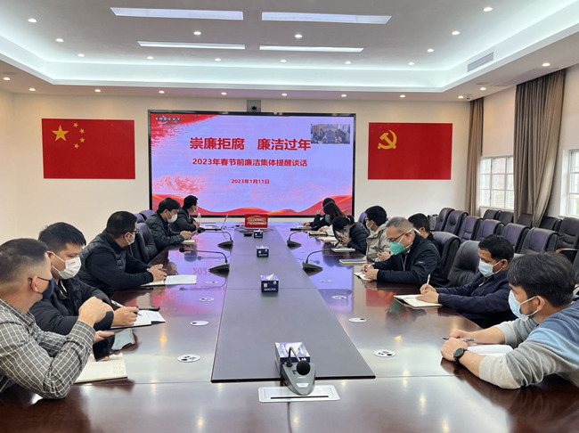 春节将至,为持之以恒加固中央八项规定精神堤坝,弛而不息纠“四风”树新风,2023年1月11日下午,汉方公司纪检支委组织党员干部、关键岗位人员代表共24人开展主题为“崇廉拒腐 廉洁过年”的节前集体廉洁谈话会,强化节前警示教育,持续正风肃纪。