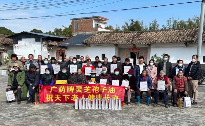 此次活动充分发挥党建引领作用,深度融合业务开展,党员与村民亲切座谈寒暄问候,并向60周岁以上老年人送去一批广药牌灵芝孢子粉。业务人员向村民开展健康知识宣传讲座,科普灵芝养生知识。