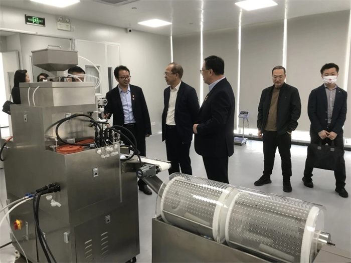 在参观实验室平台过程中,袁书记向调研组详细介绍广药牌灵芝孢子油软胶囊等特色灵芝产品的提取和制剂工艺过程,系统汇报灵芝孢子油等产品实现安全可控、质量优质、效果确切的设计与保障思路。市国资委领导充分肯定公司的技术平台建设和发展,对平台后续建设与新产品设计提出更高的要求,期望横琴中心加快建设,争取在粤港澳大湾区建设发展中发挥更大的作用。