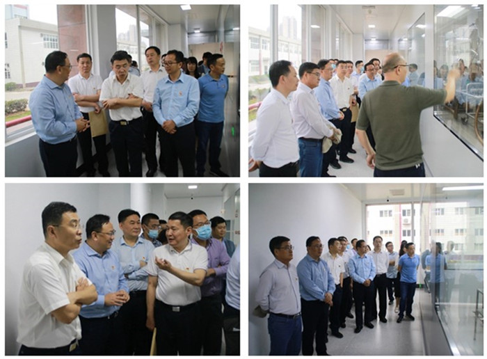 座谈会结束后,李连声、冯光其一行在袁诚的陪同下参观了综合车间孢子油生产线,实地了解灵芝孢子油的生产情况。