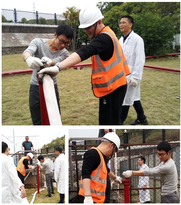 在完成各区域的清洁工作后,安全保卫部结合支部所在部门的工作性质,组织开展了消防器材的使用及罐区泄漏应急处置讲解和实操培训。